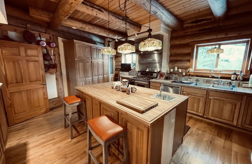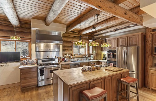 Spoil yourself and experience true mountain grandeur here at The Blue Sky Lodge! Upon arrival, you will be greeted by the classic log cabin exterior, yet as you step inside, you will see that this lodge is breathtakingly rustic while still having all of the modern comforts of a luxury home.