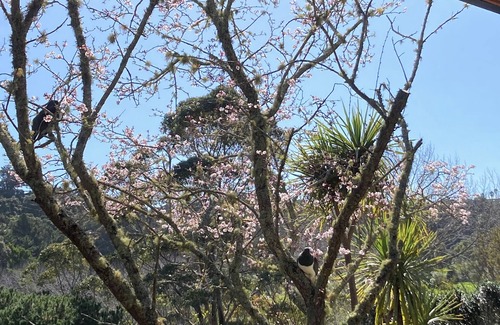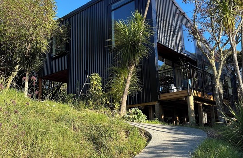 New house close to beaches, vineyards and supermarket offers a real Waiheke experience for guests. With 3 bedrooms and a sleep out there's space for up to eight guest. Mature trees provide shade and native birds while the elevated position is an afternoon sun trap. High ceilings and large windows makes for a great space to entertain and unwind. The chickens look after themselves and provide fresh eggs if you want to collect. An independent cat might come say hello but will spend most of its time at the neighbours. Trampoline and treehouse make this a great place for families to enjoy an island getaway