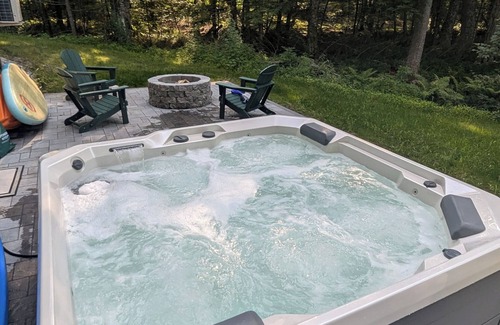 NEW construction, IMMACULATE private home, sleeps 6 - 4 bedrooms with 1 full and 1 half bath. - BRAND NEW salt water hot tub and patio installation in May 2025. Pristine cottage/camp style home quiet Sebago Lake neighborhood, build completed in 2024. Lots of room to spread out with 4 cozy bedrooms with a king, queen, full, and 2 twin beds. We have a living room on the main floor and a large family room in the lower level which is great for watching movies. AC, WiFi, PRIVACY, guests can relax and enjoy their stay. House is 1800 sq feet. Beach is shared with 3 other homes and is a 3 minute walk away. 2 kayaks..8 and 10 ft. 1 Paddle board. 30 mins to Portland ME. 2 TVs, one 55 inch. WIFI, full kitchen with all you need to cook. Dog ok with approval and pet fee. Hiking, restaurants, ice fishing minutes away. Skiing is 30 minutes away.