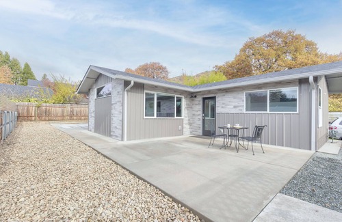 Amazingly fast WiFi serves this little gem. A new build finished at the end of 2023. It sits right behind the slightly bigger main house. The 2 bedroom, and 2 bathrooms, make it a good fit for 2 couples, or a small family. A bedroom and bath on each side of the great room. Each with it's own independent heating & air unit. It's sunny, quite and safe, tucked away yet right in town. Minutes from I-5, groceries, restaurants, coffee houses and historic downtown.