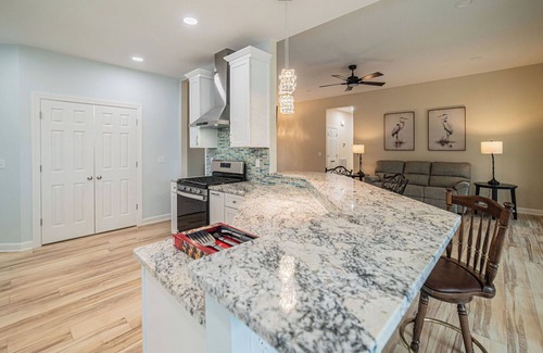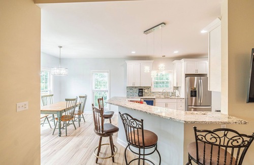 Escape to Bayview, a newly constructed home situated in a serene cul-de-sac, ideal for a peaceful retreat or a weekend by the water. Accommodating up to eight guests, this residence features four bedrooms and two bathrooms, allowing for ample space and comfort. Experience the joys of lake living with your own private dock and stunning views of the water. The community boasts walking trails, boat launches, fishing ponds, and a public pool, enhancing your stay.