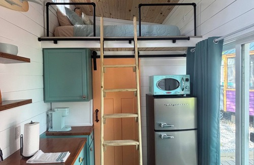 Surfs up! Escape to this ALL BRAND NEW tiny home on Middle Bass Island. With 2 loft bedrooms including 2 queen beds and 1 sofa bed, guests will feel right at home. Enjoy the convenience of amenities like new mini-split, USB plugs in both lofts, WiFi, full kitchen, huge deck, and outdoor Bbq! It’s a short walking distance to St Hazards pool/bar. Or rent a golf cart and explore the island. Want to checkout Put-in-Bay? Take the Sonny S ferry for a quick 10 minute ride then come back and relax on Middle Bass and get the best of both worlds! Either way, it’s easy to see why you’ll be able to unwind at our place!