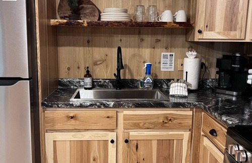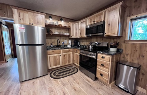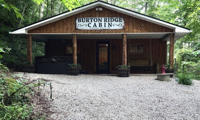 Escape to this brand-new, pet-friendly cabin on 22 private acres in Hocking Hills. Located just minutes from Ash Cave and Old Man’s Cave, it offers a hot tub, wet/dry sauna, wood-burning stove, central air, and a fully stocked kitchen. Enjoy an old-school arcade game, a walking trail through the woods, and frequent wildlife sightings. With rustic charm and modern comforts, plus Jimbo’s Bar & Grill next door, this cozy retreat is the perfect base for your stay.