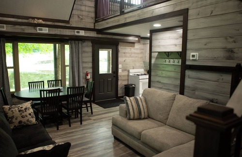 Morning Mist is a lovely cottage tucked away in a valley among the rolling hills of Amish country. It's secluded, peaceful, and everything a vacation rental should be. Set on the bank of a lovely pond, our guests have permission to fish (bring your own equipment) and enjoy the pond at your own risk. There is also a picnic table, and a beautiful fire pit area. The surrounding woods have hiking trails that you're welcome use as you enjoy the nature surrounding the cabin. Inside you'll find a kitchen furnished with the basics for cooking, a living/dining area, and one bedroom with a queen bed downstairs. Upstairs is a spacious loft area with another king bed and a lovely view of the pond. The privacy and seclusion of Morning Mist is so relaxing and rejuvenating that you'll find yourself returning often.