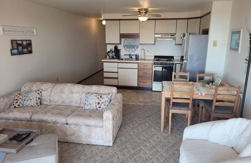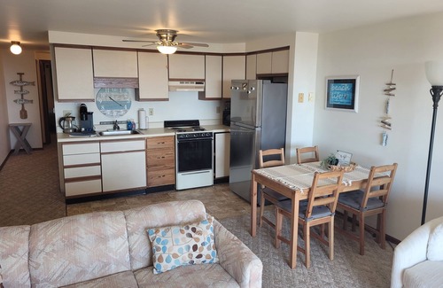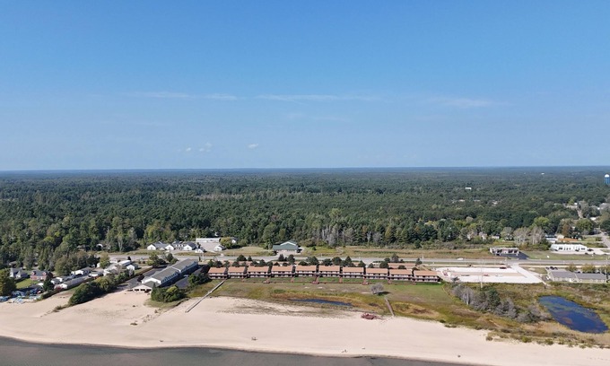 This condo is part of Huron Sands Condominiums; which are situated just south of downtown Oscoda and directly next to Au Sable Shoreline Park, at the mouth of the Au Sable River. There are 10 condo buildings in the community that share the private sandy beach on Lake Huron, which guests are welcome to use. There are also community outdoor dining tables, bonfire rings, and outdoor chairs that guests can utilize.