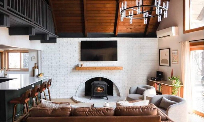 Welcome to our 3 bed, 2.5 bath freshly renovated 70's chalet, a modern retreat just 5 minutes from downtown New Paltz. Nestled for privacy, this beautifully designed getaway offers the perfect blend of comfort and privacy. With convenient access to main attractions, our chalet is an ideal escape. We're 3 min away from the Brooklyn Cider House and a quick drive to local farms, hiking trails, vineyards and restaurants.