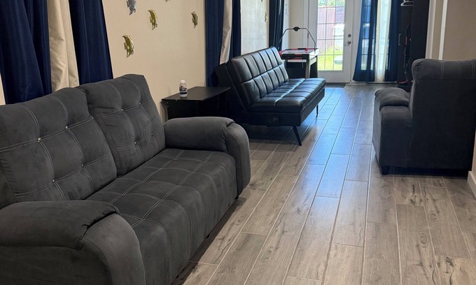 Your cozy getaway awaits in South Padre Island at this delightful One room studio. This charming space features a living room with 1 queen bed and 1 sofa bed, perfect for a small group of guests Max 2 Adults & 2 kids or 3 Adults. Enjoy the convenience of amenities like WiFi, AC, and wash & dryer machines. The bathroom comes equipped with a hair dryer and shampoo, conditioner and body soap for your convenience. For kids also have a hockey table. Also has Private back area with pool 10X10 ft with 4ft deep (2 inground & 2 above ground), great area for relax and have fun with family, barbecue grill, at front space for 2 -parking medium car size. Perfect location at beach side in-walking distance (4-5 min) to beach access, to shopping, restaurant, convenient stores and Gravity Park, fireworks can be seeing from the rear patio. Front cover patio for morning relaxing with a coffee.