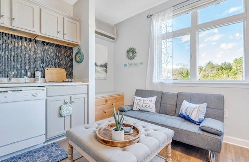 Welcome to our 320 sqft studio-suite nestled away in the beautiful lakeside mountains. Get well rested with the comfy queen sized bed that sleeps two. Need to sleep 4? The convertible couch easily converts to a small double bed that can sleep two small children or one adult! Linens provided for both. The condo includes a fully stocked kitchenette with a fridge, microwave, two burner electric cooktop, dishwasher, and kitchen table with a coffee bar. There is a full bathroom with a shower/tub combo (towels provided). The studio is positioned on the second floor in the rear of Building 2 with elevator access.