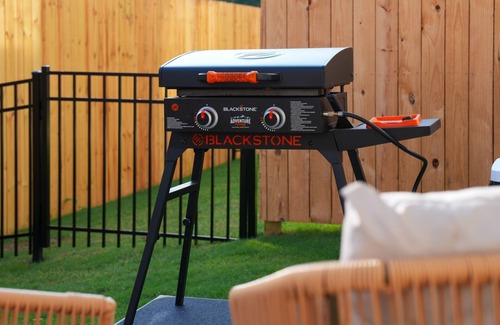 This townhome has two stories with the living, dining, and kitchen areas on the first floor. There is also a laundry closet and a half bathroom located just off of the kitchen. The kitchen is fully equipped for a great stay on the plains with a blender as well as a Keurig for your morning coffee. Small back patio is equipped with a Blackstone flat top griddle for breakfast or an evening cook out. 58" Smart TV in living area as well as 40" Smart TV's in each bedroom. YouTube TV provided so you can catch all the games or watch a movie.