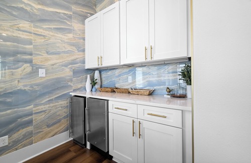 - Wet bar equipped with two beverage coolers and an ice maker, ideal for hosting.