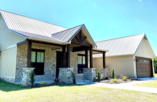 Brand new construction. Located on a paved county road in a quiet neighborhood. Minimal traffic. Featuring 3 king beds. Large circle drive. Approximately 2 minutes to Evergreen Marina featuring the Dam Bar and Grill, Hunts Brothers Pizza, boat rentals and night life on the weekends. Within 5 minutes to Eufaula Dam where you can fish or bring your side by side to ride in the sand. Within minutes to Brooken Cove and Lady Bird campgrounds. They feature camp sites, playgrounds and boat ramps to launch your boat. Within a 5-minute drive are also the Dam Store featuring daily lunch specials and pizza, Dollar General, PJs Diner, EZ Mart convenient store, KDs Bar. 15 minutes to the town of Quinton where Twin Mountains Off Road Park is located. 20 mins to the town of Stigler. Restaurants include Sonic, McDonalds, Charlies Chicken, Taco Bell, variety of Mexican food restaurants, Subway. Also has a supercenter WalMart and a Choctaw Travel Plaza with Casino. Catch a baseball game while you're there at the Stigler Sports and Recreation Park. Located 15 mins to the new Nine Marina. 20 mins to Eufaula. Eufaula featured attractions include Jellystone Park, Extreme Marina with restaurant. Eufaula restaurants include, Braums, Boomerang, McDonalds, Subway, Captain Johns, Tavern No9, E's Hideaway, Mama Tigs Pizza. If you like to hike check out Robbers Cave State park that is approxmately 35 mins away. Absolutely no smoking of any kind in the home. No pets allowed. No garage access.
