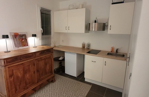 - 1 bedroom suite on the ground floor, with a separate entrance, with a small kitchen (2 induction burners, fridge, microwave) and a bathroom / WC