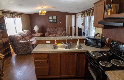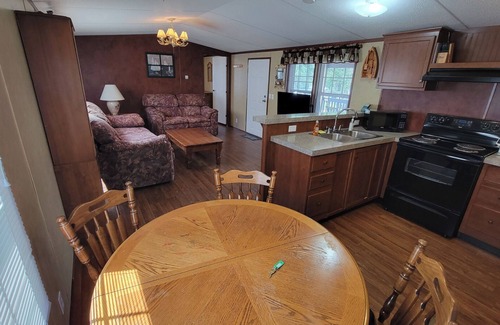 Built in 2012, this mobile cottage has 2 bedrooms, 1 bathroom, a full kitchen, and a spacious living area.