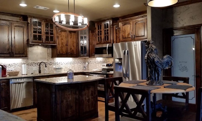 Our guest house (barndominium) was recently built out with high-end finishes (granite, hardwoods, etc) and beautiful, new furniture. Overlooking a large pool (feel free to use) and with a nice patio and grill, you will feel right at home.