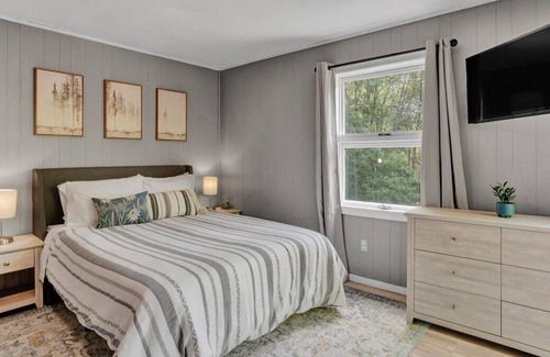 Our place is a 3 bedroom, 2 bath house, with a fun- filled entertainment space in the lower level. We have a fully equipped kitchen that connects to the dining room for seamless entertainment and fun with friends and family. Ideally sleeps 8 guests but there is a Queen sofa bed for up to 2 additional guests and has parking for 6 vehicles.