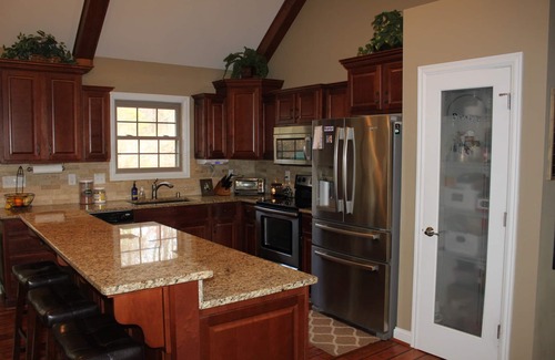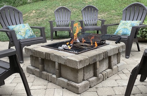 We live in a new (finished in 2011) home in Suburban Louisville. On the main floor, the dining room, living room, and kitchen are in one great open concept room. On one side of the great room are 2 bedrooms (queen beds) and bath; on the other side is the master (king bed) and master bath. Downstairs we have a completely finished basement, complete with large tv and sectional for watching a movie, a full-sized pool table that can be converted into a Ping-Pong table, full bath, mini-fridge, a guestroom/playroom (this is the 4th bedroom - queen bed), and an office. Out back is our covered patio with a 500 sq ft addition, complete with a swing, firepit, and new (2020) Weber gas grill. It's a great place to relax with a glass of wine and watch the fireflies light up the summer night :)