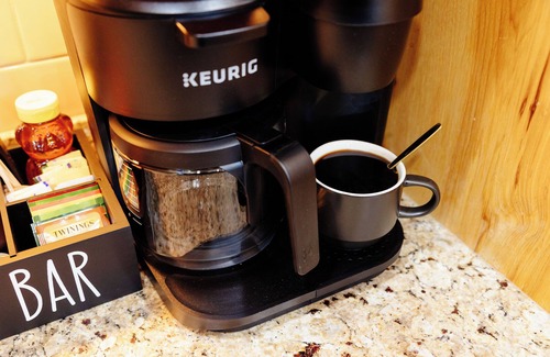 Kitchenette with stocked coffee & tea bar