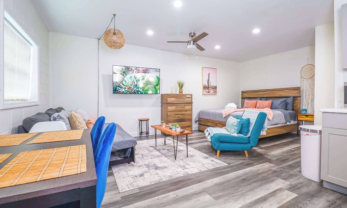 With Wi-Fi, a Smart TV, air conditioning, and designated parking right by the studio, all the essentials are ready to make your stay as comfortable as possible. Settle in, relax, and enjoy your time in Orlando—you’re perfectly situated to explore it all!