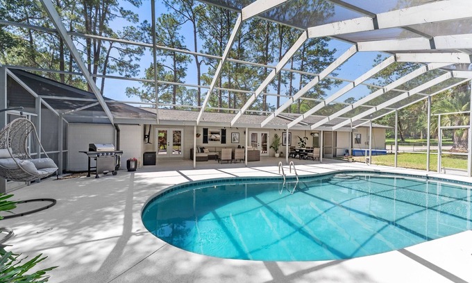 **Ocala Designer Retreat w/ Heated Pool, Outdoor TV & Pet-Friendly Yard**