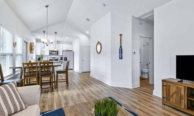 This new 2 bedroom/2-bathroom home is nestled in a quiet fishing town with quick access to boat ramps and Goose Island State Park. Inside the home you will find, relaxing coastal decor, an open kitchen for cooking meals with friends and family, two spacious bedrooms and a pullout sofa in the living room. Outside you will be able to kick back and relax on the front porch, while cooking your fresh catch on the outdoor grille.