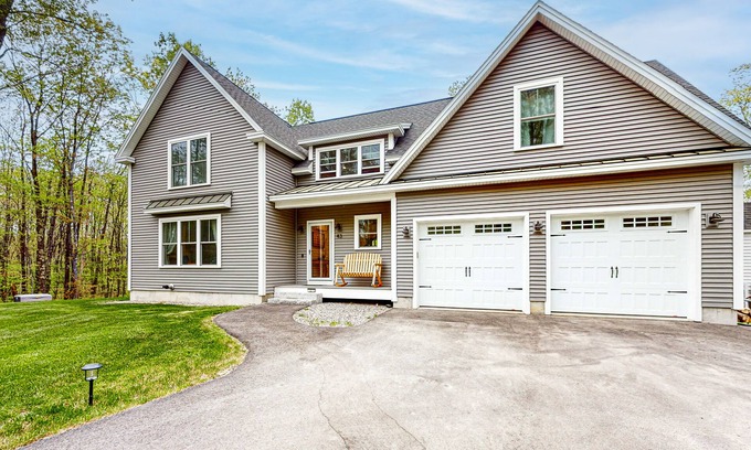 This three-story home sits just west of I-95 and Maine Route 1, less than five miles from downtown Kennebunk's quaint shops and restaurants. Take your pick of nearby beaches, including Kennebunk Beach, Mothers Beach, and Gooch's Beach, all within nine miles. Spend your days hiking nearby trails, picking produce at local U-pick farms, and swimming in Kennebunk Pond (nine miles). Portland and Portsmouth are both within 30 miles as well.
