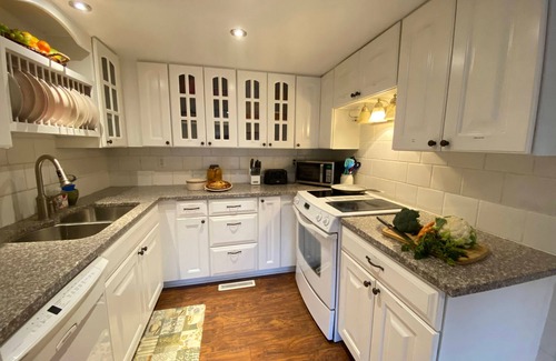 The house is thoughtfully set up with tons of amenities perfect for cooking, working, and relaxing. The space comfortably sleeps and feeds 8 with 3 bedrooms, and a pull-out sofa bed in the living room.