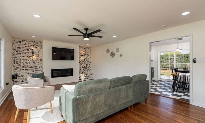 Steps away from the revving engines at Bristol Motor Speedway, this 3 bed/2 bath house is your Dragster Dream House! Our newly renovated property is 1,800 sq. ft. and features a full kitchen, three televisions, washer/dryer, and dedicated game room with a pool table. Whether you are looking to explore the Southern Appalachians, embark on a NASCAR adventure, place some bets at the Hard Rock Casino, or simply relax and unwind, this is the perfect place to be.