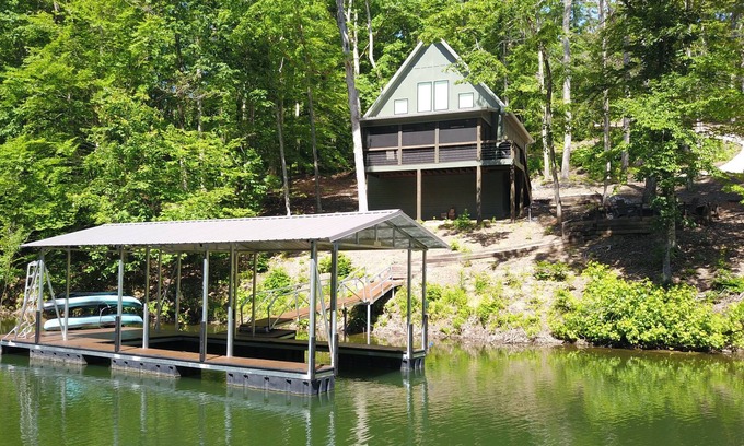 Unwind at this stunning 4-bedroom, 3.5-bath lakefront hideaway, nestled in a quiet cove, perfect for a peaceful getaway with family and friends. With room to sleep 10 guests, a spacious dock, and fantastic outdoor amenities, this is the ultimate spot for relaxation and adventure!