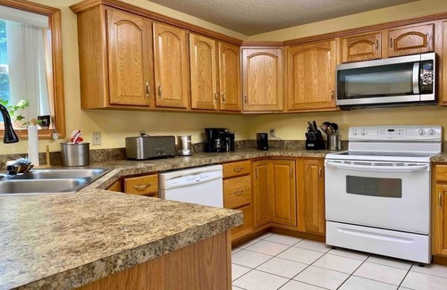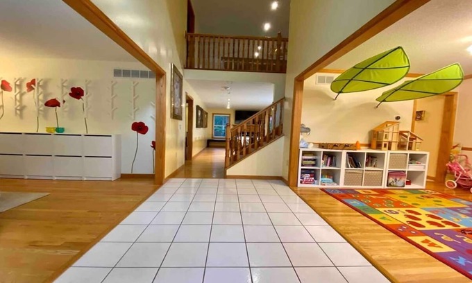 This exquisite vacation kid friendly house is perfect for large families and gatherings. It offers 5 bedrooms, 3 bathrooms, fully stocked modern eat-in kitchens, a dining area with a gas fireplace, kids play area and multiple living rooms. Huge fun area with a billiards, tennis, foosball tables, exercise equipment, couches and TV. Blazing fast internet throughout the house and multiple Smart TVs with streaming services. Amazing deck, kids playground, outside party area and a fire pit.