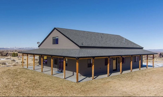 Located just miles away from spectacular Lamoille Canyon. This 2700 sq. ft. modern home is on 10 acres of land. 10,000 sq. feet of grass surrounds the house. Covered wrap around porch. Built in 2020. All new appliances. 3 bedrooms, 3 bath, 7 beds. Large screen with Projector and televisions. House sleeps up to 12 guests, $50.00 for each additional guests after the first 2 guest at $350.00. Access to 500 sq. Ft. bunkhouse (2 queen & 2 twins beds, $200 per night / No bathroom or amenities). Four car garage with gym. Both house and bunkhouse can sleep 18 people in beds. Great for hunting, hiking, skiing, snowmobiling, weddings, family vacations, etc.
