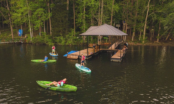 Hooked on Hartwell is a fisherman's paradise and perfect for the whole family. Some of the best fishing on the lake is in this cove!! With gas logs fireplace, a custom outdoor firepit overlooking the water, games, outdoor movie screen, hammock & swing on the dock, paddle boards, and 2 underwater fishing lights, you will not get bored!!