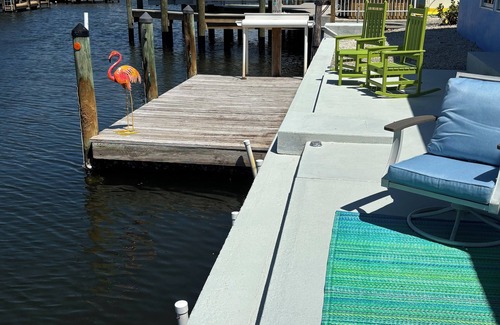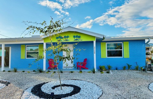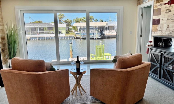 Its all about the WOW!! Your Matlacha adventure begins at this chic 3-bedroom 3 full bath house. This home has been rebuilt and has a Hidden room. Keep it to yourself and let your guest in on it when the time is right. Don’t put your dog in the kennel. Small dog ok for addl fee. Let me know at time of booking. Each bedroom features a new cozy queen bed and bamboo sheets. Master bedroom faces the water side. You cannot be any closer to the water unless you were sleeping on the dock. This fun home has a boat dock, bbq grill, therapy lights, white noise sound machines, video arcade game, wifi, usb outlets, a washer/dryer, ac, tv's board games and more. Your family will have FUN and not want to leave. The full 3 bathrooms are stocked with essentials like a hair dryer, shampoo's, soaps, towels, and detergents. Coffee & Tea is provided at the coffee/wine bar. This home is on a quiet street. Home sleeps up to 7 people. The 7th person would have an air mattress or couch. Please message if you need a 2nd home we have another beautiful one right next door. . Boat launch is 1/2 mile away and you can take your boat around to the back of the house and tie it to the dock. Fishing is great in Matlacha. Take your boat or a ferry ride to Cabbage Key for the world famous cheeseburger in paradise. Some of the restaurants on the island are Micelllis, CWFudge and ice cream, The Perfect Cup, Yucatán, Blue Dog, Kickstands, and Pho Grill just reopened. Grocery store is 1.5 miles away. Public salt water pool 10 minutes away by car. Historic Fort Myers 25 min away by car. P.S. The bridge has been repaired and is now two lanes so the traffic is GONE as of 4/20/25.
