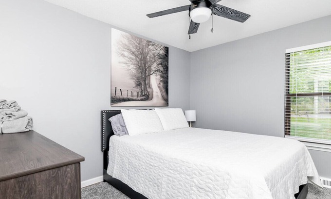 Welcome to THE LINCOLN LODGE – Suite II! The location is EVERYTHING! This home is located in Elizabethtown, KY – minutes from The Elizabethtown Center and the I-65; and 20 minutes from Ford’s BlueOval & SK plant. Whether our guests are in town for a few nights, the week, a month, or more – we can, and will, accommodate all lengths of stay. The Lincoln Lodge – Suite II offers the guests an entrance code to the house (front & back entrance), and to their own room; which includes a Queen Bed with a new foam mattress, a Smart T.V. to stream their favorite shows and movies, space for storage, and shared bathrooms. The L. L. offers a shared kitchen and dining area; which has all the facilities and appliances needed to store drinks and foods, cook, and dine, as well as a Keurig machine with free coffee to kickstart the mornings or extend the nights. The L. L. offers a shared washing and drying machine, and iron with an ironing board for our guests convenience. The L. L. offers all the essentials : Free Wi-Fi (500+ mbps), Air Conditioning, Heating, Ventilation, etc. The L. L. covers the safety protocols and is equipped with camera surveillance of the home. A professional cleaning service comes three times a week to clean the common areas – including all shared bathrooms. There is free parking on our street. We ask that residents treat other residents with respect and follow our few rules :