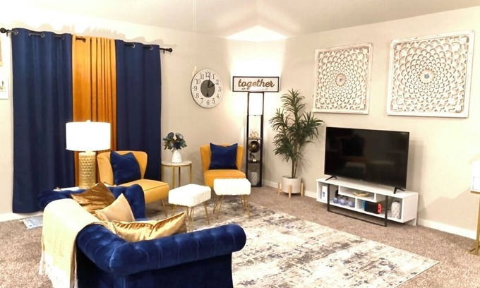 Home is equipped with smart home devices, (Camaraโs on exterior Only). The locations of exterior cameras is the front door doorbell which faces guests as they enter, front center of home facing neighborhood street, west of house facing back door, and back camera facing back yard. Cameras are to insure that our guests receive a secure and comfortable stay and run 24/7. Also, enjoy your WiFi movies on the big 50 inch screen, as well as a television located in the Master suite. A spacious 300 square foot walk-in closet is perfect for long stays.