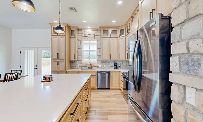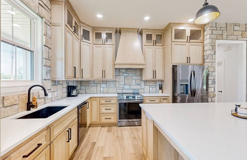 Escape to this brand new home located in a peaceful neighborhood on a paved county road in Stigler, OK. With minimal traffic, you can enjoy the tranquility of the surroundings while being just a short distance from various attractions. This spacious house features 3 king beds, ensuring a comfortable stay for you and your guests.