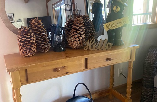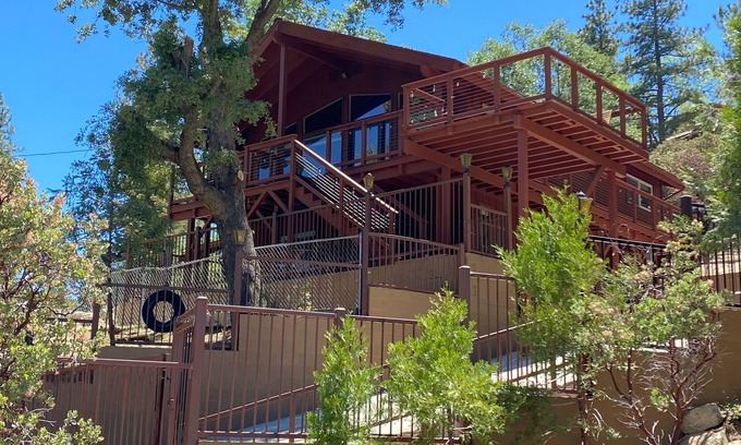 NEW Listing/Host - Newly remodeled cabin in the woods with spectacular views of San Jacinto Mountains, Taquitz Rock. 3 bedroom/2 baths/ 10 guest total. Deck around the house. Perfect for couples or families. New furniture, 6 beds, 2 living room, almost 1,600 sqft., Smart TV’s, WiFi, bbq grill. 5 min from downtown, closed to hiking trails. Surrounded by beautiful pine trees. Outdoor sitting around the house. If you love nature this is your cabin!