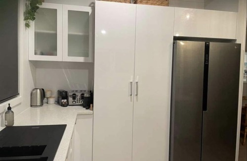 Large double-door fridge freezer and plenty of storage space for all of your goodies :) Lots of bench space, double sink with sprayer tap, induction hob and oven.