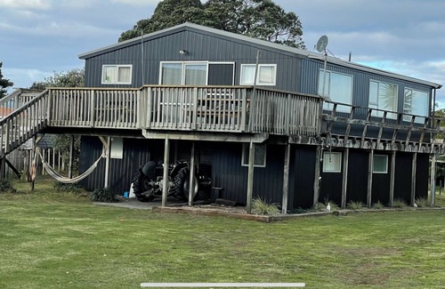 With Bland Bay beach on one side and the harbor on the other accessible via a private residential road, this two-level bach has been set up for 2 families with children to enjoy and make magical memories.