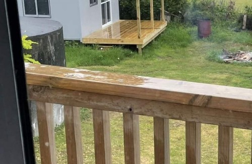 There is a separate cabin that has a queen bed and bunk bed also available with a wraparound deck and direct views to the harbor.