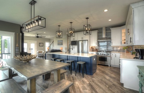 This is a new constructed lake front home with 100 feet of lake shore for the family vacation in mind. Pets are welcome (max 2). This property has a total occupancy of 15 people. Outside guests are not encouraged for parking is up to 5 cars. We do not host wedding ceremonies or other events that requires more parking or more people. Owner is on the street in case anything is needed. From Memorial Day to Labor Day we have 3 and 4 night minimums.