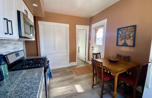 • Large dining room with seating for eight & cabinet w/ games & guides to area attractions