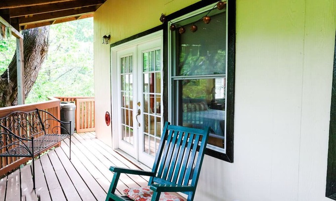 Escape to the charming Joy Cottage, nestled along a peaceful creek, for a romantic retreat for two. Enjoy all the amenities we've thoughtfully included, such as a full kitchen with a Keurig brew station, cozy bed, smart TV, and full bathroom. Relax on the creekside deck and stargaze in the evening, or take a stroll to the water's edge and try your hand at fishing. Just eight miles from the bustling town of Floyd, named one of the best small towns in America, you'll have the best of both worlds - a serene escape and access to music, food, and shopping. This charming 400 square foot cottage is the perfect place to sleep and play. So treat yourself to a stay at Joy Cottage and discover true joy in the peaceful countryside. Book now and make unforgettable memories at Joy Cottage!