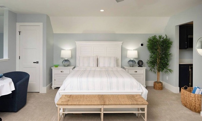Kick back and relax in this stylish, newly built properties King guest suite with private entrance. Located on the edge of the city limits of Douglas overlooking a large meadow with a beautiful saltwater pool, it's strategically located close to Lake Michigan and downtown Douglas. The large 2nd floor King Suite has been thoughtfully designed with a small kitchenette, fireplace and a beautiful light filled sitting area. As a brand -new build, this property is currently undergoing the final stages of landscaping installation, promising to deliver exquisite gardens and lawns when completed.