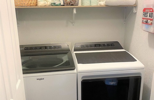Cooking space abounds in your full kitchen. The local restaurants here are great, but when you want to eat in, you'll enjoy the adjacent dining room and all the culinary supplies that come stocked for you.
