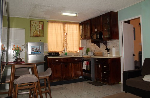 Stay at this spacious 1 BR apartment located on the 1st floor of its New Kingston complex just walking distance from major banks, offices, hotels, Emancipation Park, jogging trail, nightlife, restaurants and attractions. Fully-equipped with a/c, hot/cold water, cable tv, wifAirport transfer & car also available i, living/dining area & kitchen, gated community with 24hr security. You are welcome at our place.