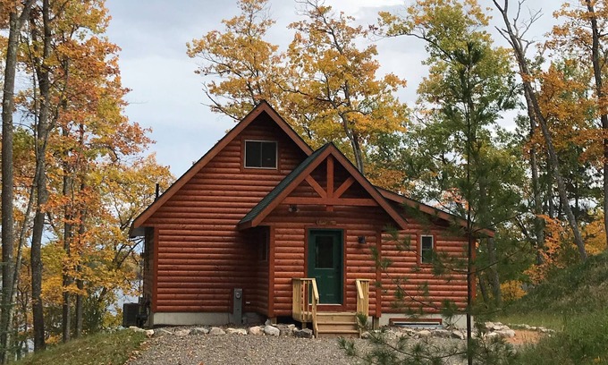 The layout of the home is the classic "walk-out" cabin style. As you enter the home through a coat room/foyer on the main level, you will pass through a galley-style kitchen with quartz counter tops and stainless appliances. The kitchen opens into a pinewood paneled dining room and great room overlooking the lake through floor to ceiling windows. A gas-burning fireplace in the great room completes this cozy, Northwoods scene. Also on the main level is a private master bedroom/bathroom suite with a king-sized bed. An additional full guest bathroom is provided on the main level. Above the main level is a loft that looks out over the lake. Two futon couches are provided in the loft. The lower level of this home has a den with a gas fireplace and LED TV, two bedrooms, and a third full bathroom. One bedroom has a queen bed. The other bedroom has full/full bunk beds that the kids are sure to love. Walk out of the den through the patio door to a landscaped terrace with a charcoal grill and a fire pit and beautiful Planting Ground Lake in the background. From the terrace, a sloping path lined with landscaped timber steps leads to the lake and the boat dock. The fishing is excellent right off the pier!