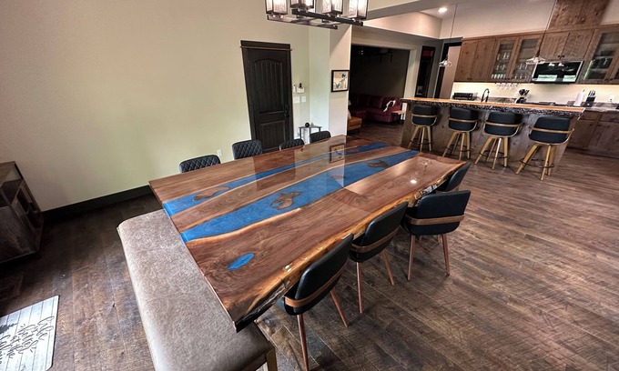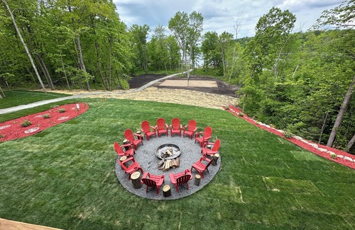 Who said rustic and modern couldn't be friends? This brand new 7,000 sq ft home outfitted with 6 bedrooms and 20 beds eagerly offers its patrons endless Up North fun! A fully stocked kitchen with spare refrigerator will keep the 24 seats in and around the Dining Room fed. The Hearth Room will bring you back in time, so start a fire in the wood burning stove and relax! Lake side you'll enjoy a sprawling deck, patio, firepit or my favorite spot - the open air, covered porch with outdoor TV. The party is in the basement though with Golden Tee, a 400 game retro video game console, ping pong, darts and a 14' shuffle board table! Relax in the wet sauna or open the garage door for some fresh air. But you like lakes (who doesn't); so head down the hill to the sand volleyball court and 180' of shoreline. Bring your own boat or rent ours. Powerful WiFi 7 runs this house, your phones, and the work station in Bedroom #6 in case the boss calls. Both garage stalls have EV car chargers with J1772 and Tesla adapters; and right outside are 30 and 50 amp RV hook-ups. For a change of scenery, amazing Nisswa is a short 7 minute drive!