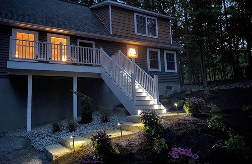 Our home, completed in 2024, is designed for comfort and enjoyment, featuring all new appliances, including an LG Laundry Center and gas range with center griddle, and quartz countertops. The kitchen boasts a spacious nine foot long counter height table with reclaimed wood top, perfect for gathering. The upstairs loft, with its two twin beds and large screen TV, is an ideal spot for hanging out. Additionally, there are two cozy bedrooms, each with a queen bed, and two well-appointed bathrooms (one bedroom is an ensuite with smart TV) to ensure your stay is comfortable. As a new build, all the beds and pillows are brand new, ensuring a comfortable stay. Our decor is intended to evoke a connection with nature. Our larger deck features a Solo Stove with surround, perfect for cozy evenings outdoors.