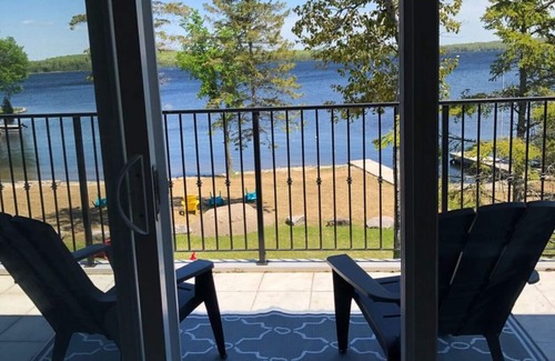 Newly built 6-bedroom private lakehouse on a secluded road with a private inlet and your own sandy beach. Bright cottage with easy access to large lawn for games, beach with a shallow walk-in area for kids. Enjoy outdoor fires or the spacious deck for relaxing. A variety of water toys for all ages - paddleboards, kayaks, canoe, paddleboat and water mat. Lakehouse has AC, WiFi, satellite TV and stereos. Large patio and table for outside enjoyment.