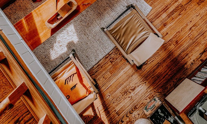 - The living room balances comfort and chic - cozy up in front of a wood burning fireplace, toss on a record from our collection, and enjoy!